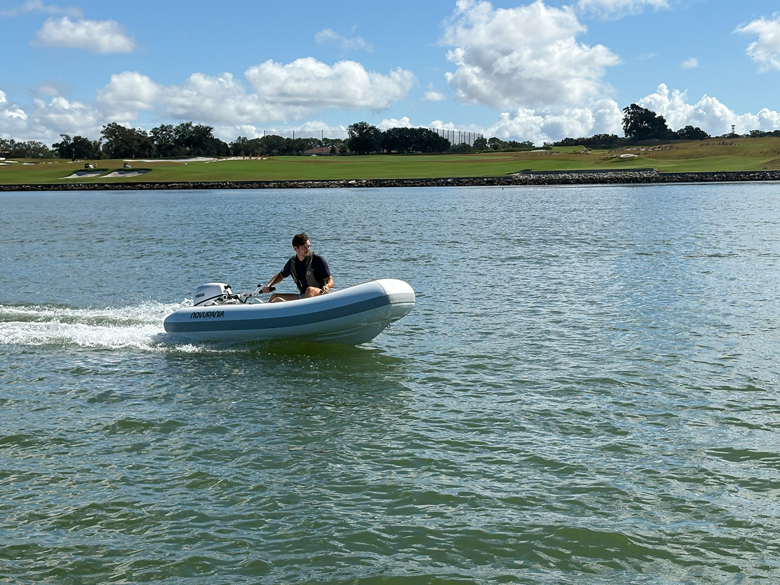 The TR 270 is the most compact Novurania available. With its open deck and console-free design, it is lightweight and versatile. This 9-foot tender can carry up to three people. It is the ideal RIB for effortless access to shore and leisure time on the water.